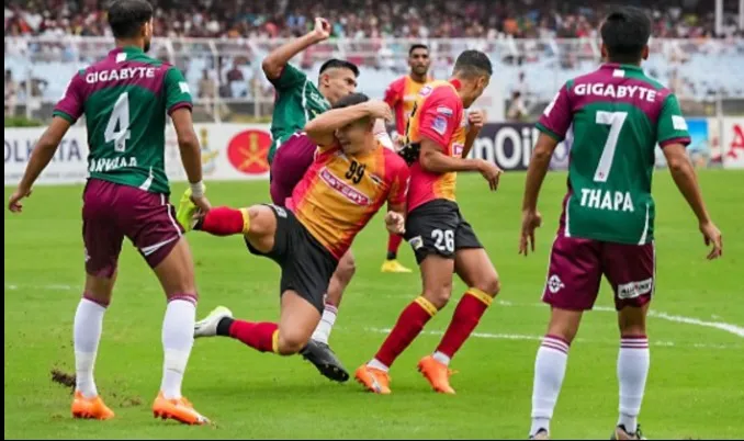 এফসি গোয়ার গাঁট কিছুতেই ছাড়াতে পারছে না ইস্টবেঙ্গল। গতবছর সুপার কাপের ফাইনালে এই গোয়ার কাছে হারতে হয়েছিল ইস্টবেঙ্গলকে। আইএসএলেও গোয়ার কাছে পয়েন্ট হাতছাড়া। দারুণ শুরু করেও পরপর দুটি ম্যাচে হোঁচট খেতে হল লাল–হলুদ ব্রিগেডকে। একাধিক সুযোগ নষ্টের খেসারত দিয়ে এফসি গোয়ার সঙ্গে গোলশূন্য ড্র করল ইস্টবেঙ্গল।